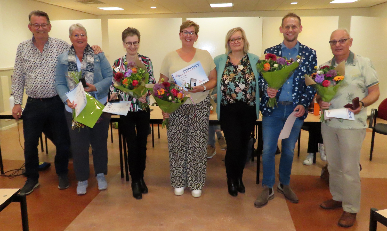 Tijdens dezelfde vergadering werden vijf leden gehuldigd voor hun jarenlange betrokkenheid bij Harmonie Katwijk. Bert Freke werd in het zonnetje gezet voor zijn indrukwekkende 65-jarig lidmaatschap. Ook Bea Beekhuis, al 40 jaar actief lid, ontving terechte waardering voor haar langdurige inzet. Daarnaast vierden Sylvia van Rijn, Marjo van Westerop en Simon van Rijn hun 12,5-jarig jubileum – een mooie mijlpaal van verbondenheid met de vereniging. De jubilarissen ontvingen een attentie, oorkonde en waarderende woorden van het bestuur en de aanwezige leden.